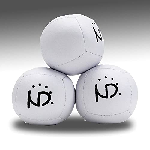 These 6-panel juggling balls are made of synthetic leather and are hand-stitched around to a millet fill. The ND juggling ball is soft but durable.