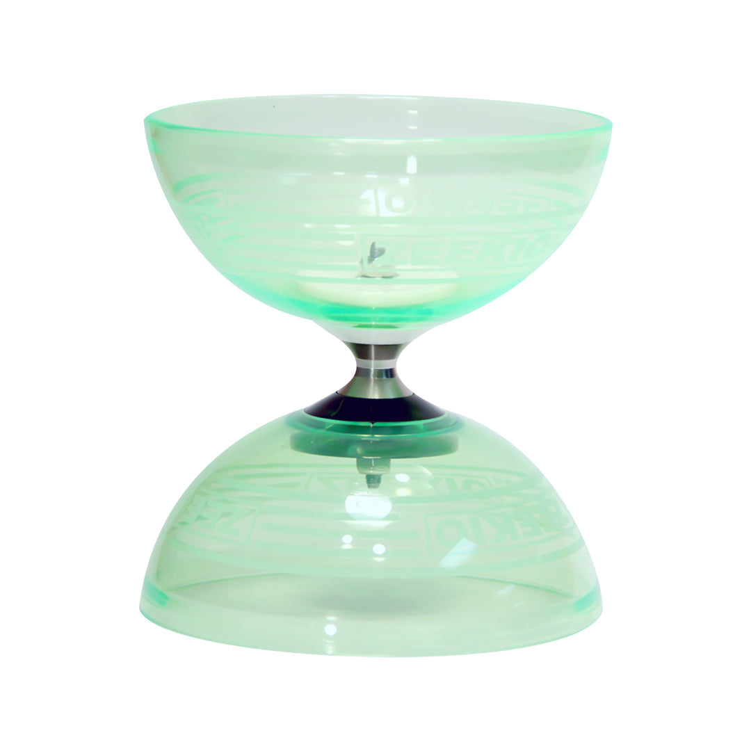 The Master Spin is one of the finest Diabolos on the market. Designed by and for diabolo players. It features full sized cups made for an ultra tough and transparent polycarbonate plastic embossed with four site lines and the Zeekio logo. These cups maintain their shape well and look great.